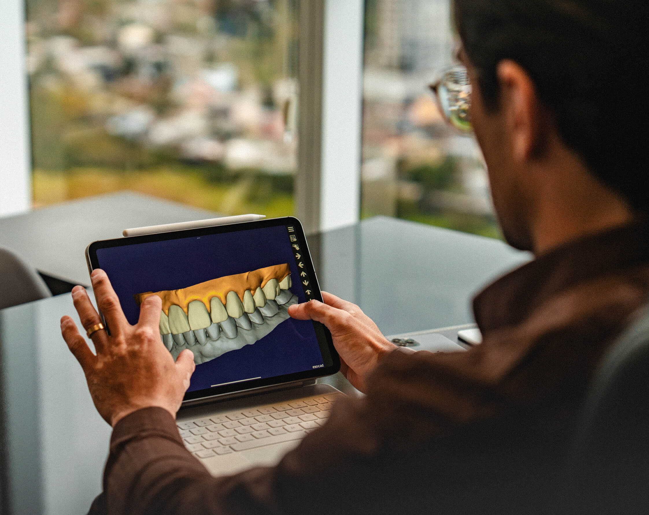 Aqui no consultório trabalhamos com o fluxo digital que é uma nova forma de planejar e executar com o auxílio de softwares, máquinas e aplicativos para oferecer os melhores tratamentos para os pacientes.